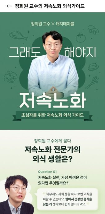 그런 가운데 지금 이런 것들의 방향이 왜 잘못되었는지 운만 좀 떼자면… 진짜로 정희원 선생이 브랜딩하고 있는 저속노화의 개념에 충실한 식생활을 하자면 각자의 삶을 상당부분 바꿔야 한다. 외식 같은 건 말이 안 되고, 직장인이라면 따돌림을 당할 각오를 하고 도시락을 싸가지고 다녀야 한다. 시간과 체력이라는 귀중한 자원의 상당 부분을 이쪽으로 재분배 및 집중시켜야 한다. 사실 그래도 될까말까 한다.