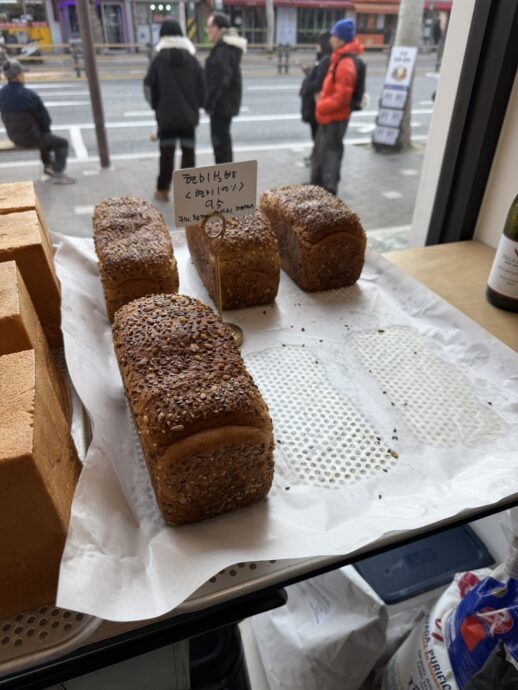 가격에 비해 빵이 못생겨서 늘 지나쳤는데 창 너머로 보이는 현미식빵(9,500원)의 맛이 너무 궁금했던 것이다. 그래서 들어가 샀고 결과는 실패였다. 질감은 부드럽고 나쁘지 않았으나 너무 달았다. 물론 식빵은 대체로 단맛 쪽으로 기우는데, 이건 상당히 한쪽으로 쏠린데다가 전부 설탕에서 나온 거라고 볼 수 없는 불쾌함을 품고 있었다. 다당류로 촉촉함을 유지하려는 과정에서 삐져 나온 단맛 같았다.
