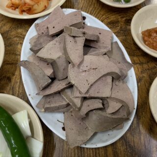 평범한 당면 순대를 쓰는 집에 간(7,000원) 메뉴가 따로 있으면 호기심을 안 갈 수 없다. 뭔가 이유가 있으니까 단일 메뉴로 팔겠지? 그래서 주문해 먹어 보면 헤아릴 수 있다. 차게 나오는 간 대부분-전체는 아니다-이 촉촉하기 때문이다. 수원이 고향이라 어릴 적부터 순대를 참 많이 먹고 살았건만, 기억을 더듬어보면 이런 돼지간은 처음이다. 가장자리와 중심부의 감촉이 다른 간이라니. 순대의 곁들이가 아니면...