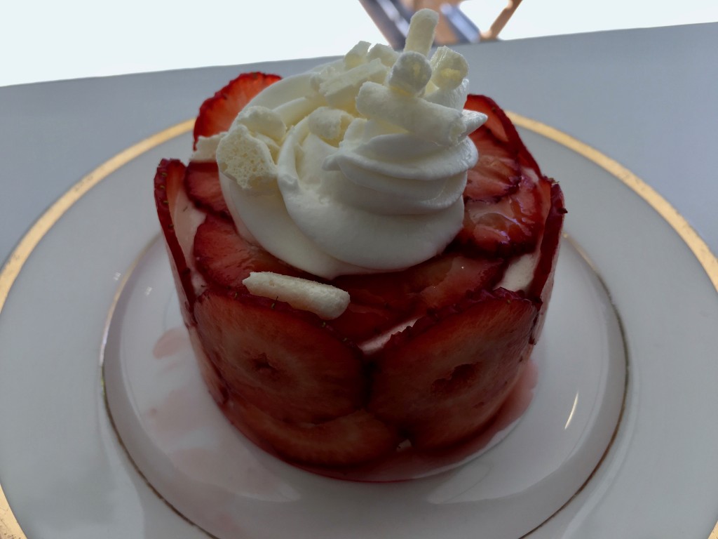 괜찮은 케이크였다. 화이트와인에 재운 딸기가 피스타치오 무스를 감싸고 있는데 둘이 맛 조합이 무난하고, 질감도 좋았다.  굳이 얇게 저며서 절인 딸기를 겉에 붙일 필요가 있을까 싶었지만 안 그랬다면 이런 이름도 붙일 수 없는 것은 물론 딸기를 쓴 케이크임을 강조할 수도 없었을 것이다. 거기까지는 좋은데 가운데의 크림과 머랭 부스러기는 잉여로 다가왔다. 물론 바삭거리는 요소가 필요하겠지만 무스의 바닥이나 속에...
